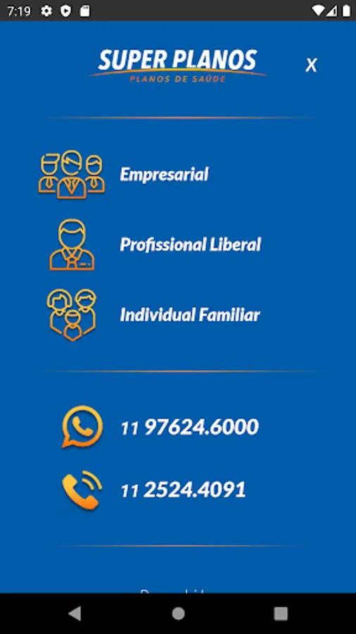 Super Plans is an App that aims to take you to quickly and safely the quotation of the main products in the market. Whether you are an individual or legal entity or a liberal professional, we are ready to serve you.