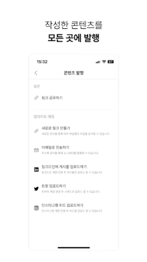 - Keep your content ideas in drafts and distribute them on social media at any time.