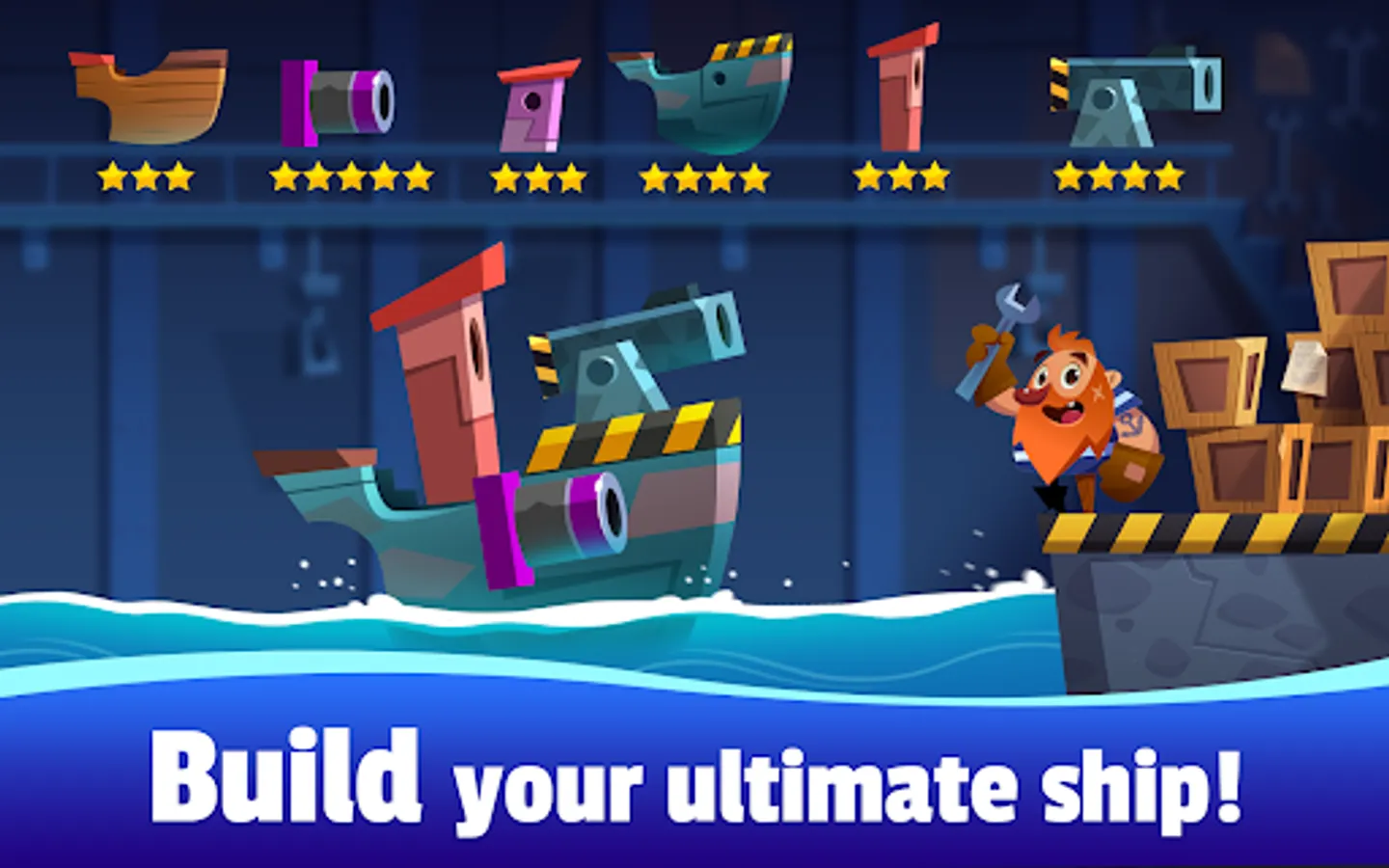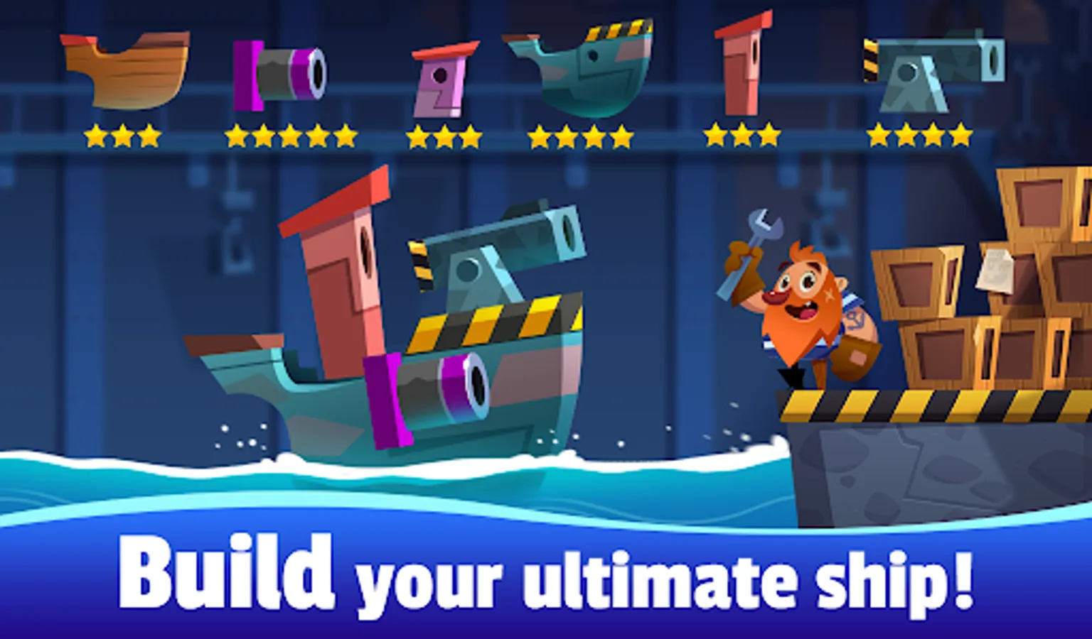 Construct your ultimate freight, yacht or boat from puzzle parts and sail away to the sea! By battling against online PvP opponents you can unlock new weapons and other parts! Go wild and get creative by trying out limitless variations how to put your ship together while enjoying the exciting wave physics!