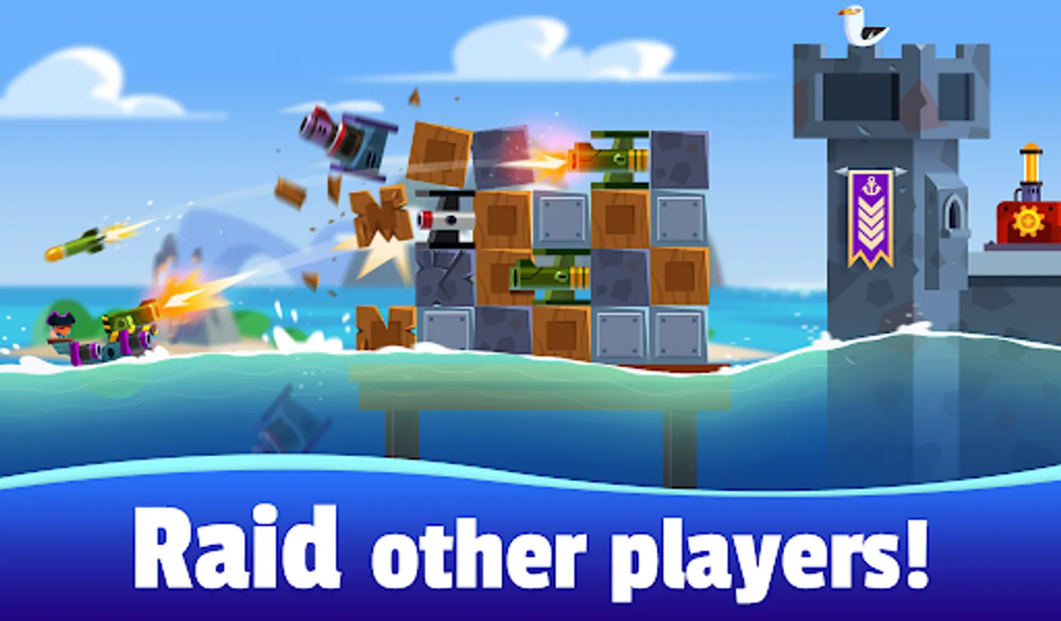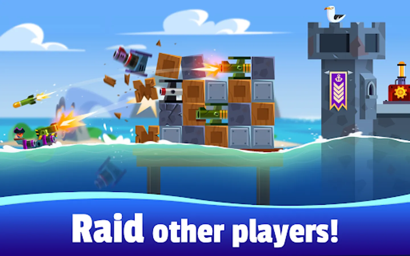 Create your own port base and it’s defence with minefields, turrets, blocks and cannons, so that other players don’t raid it to the ground!