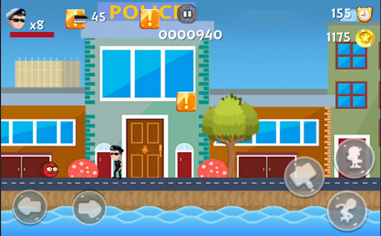 Super police World Adventure jumps across platforms, defeats enemies, collects coins at every level of challenging game.