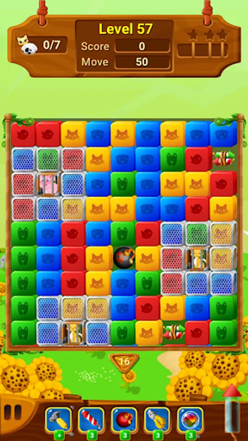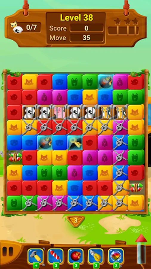 Match two or more boxes of the same color to clear the level and rescue the pets.