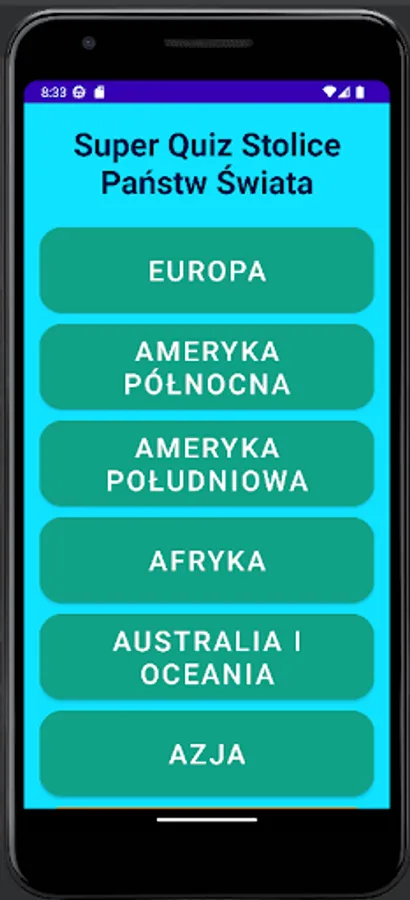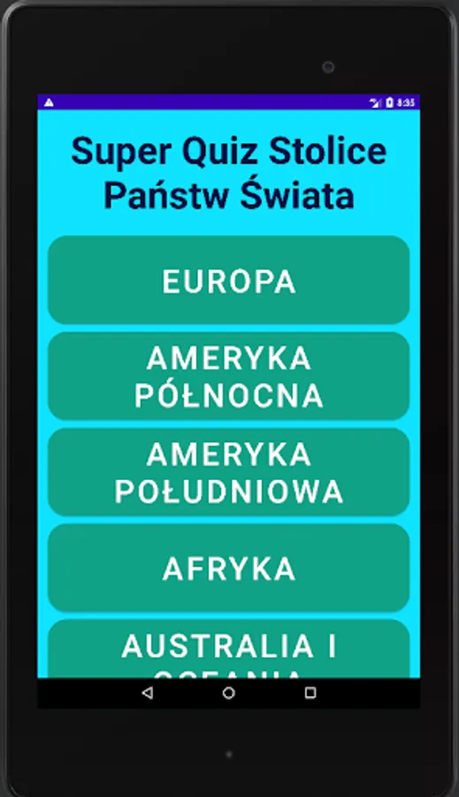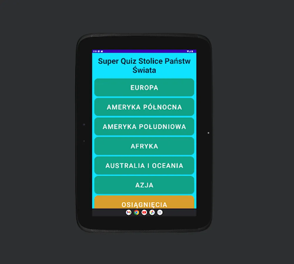 Super Quiz Capitals of the World contains all the capitals of the countries of the world. This allows you to quickly and comfortably learn geography in a handy form. The quiz has been divided into individual continents, you can learn in learning mode or test your knowledge in quiz mode. It is worth trying and getting achievements for correct answers in the game, which is an additional motivation to improve your results. The application was released as part of my master's thesis. I cordially encourage you to unlock all levels in the game for free or remove ads. options are available in the game in exchange for completing an anonymous survey intended for the diploma thesis. Thank you very much in advance for your help and for downloading the application.