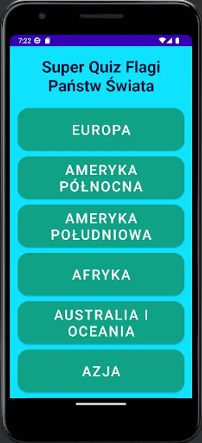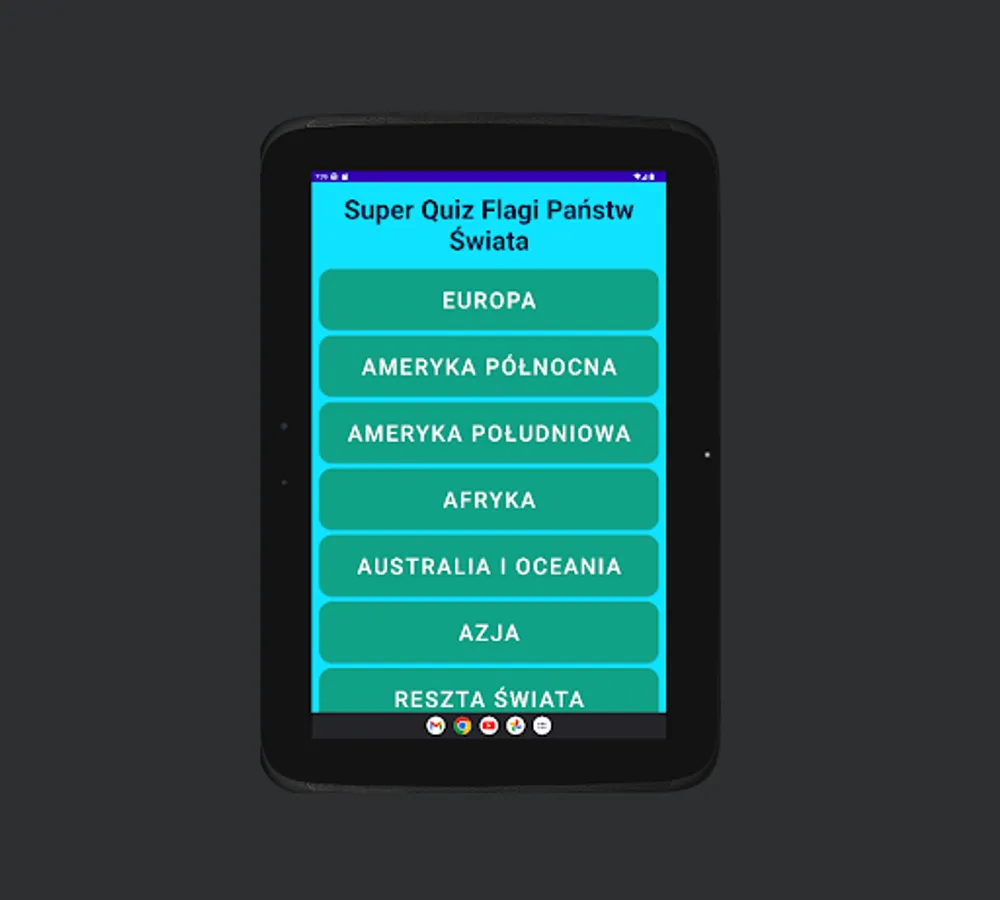 Super Quiz Flagi Państw Świata zawiera wszystkie flagi państw świata. Pozwala to na szybką i komfortową naukę geografii w podręcznej formie. Quiz został podzielony na poszczególne kontynenty, można uczyć się w trybie nauki lub sprawdzić wiedzę w trybie quizu. Warto postarać się i zdobywać osiągnięcia za poprawne odpowiedzi w grze, co jest dodatkową motywacją do poprawy wyników. Aplikacja została wydana, jako część pracy magisterskiej, Serdecznie zachęcam do bezpłatnego odblokowania wszystkich poziomów w grze lub usunięcia reklam. opcje są dostępne w grze w zamian za wypełnienie anonimowej ankiety, przeznaczonej do pracy dyplomowej. Z góry bardzo dziękuję za pomoc i za pobrania aplikacji.