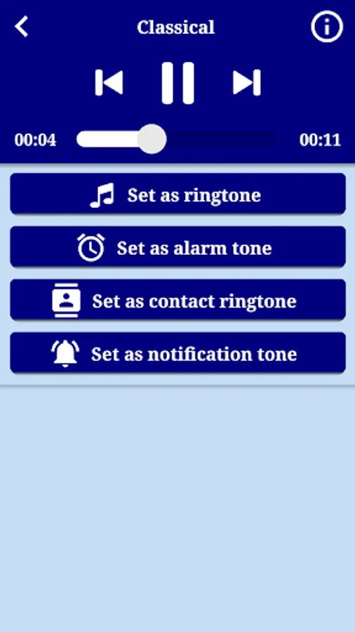 ★ Set the current audio track as Phone ringtone, Alarm tone, Contact ringtone, Notification tone.