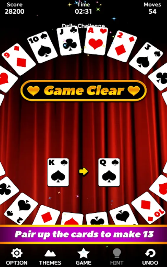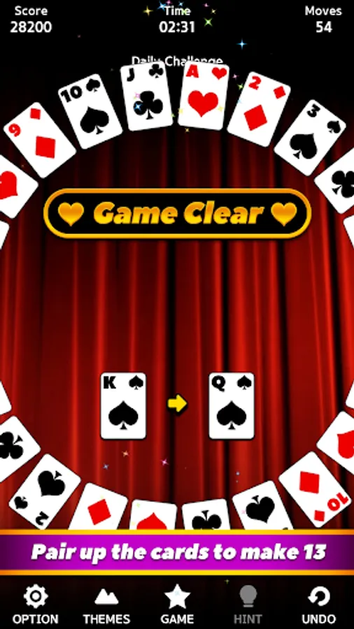 -If there is no card matching 13 in the pyramid, try pressing the card draw button.
