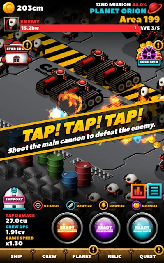 -Tap! Tap! Tap! Shoot the main cannon to defeat the enemy.