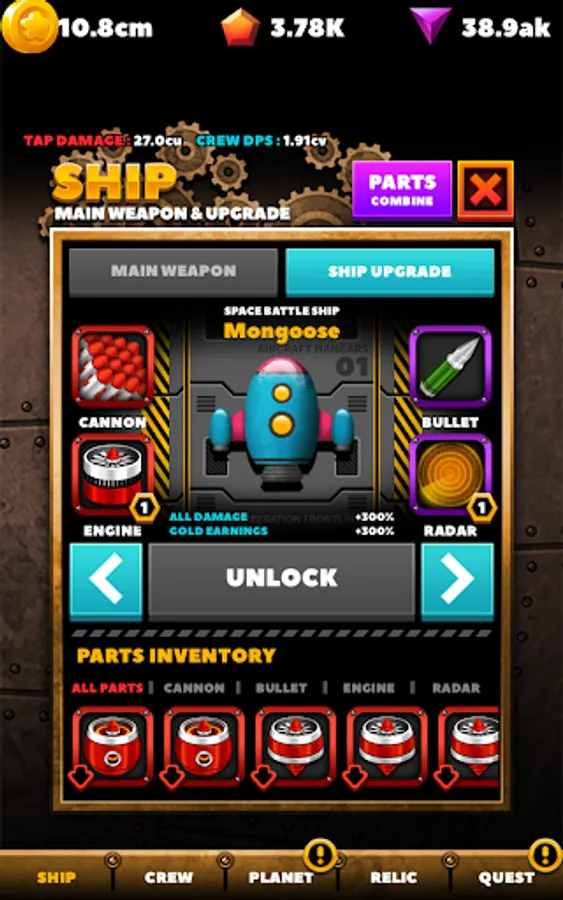 -Install the parts and upgrade the battleship.