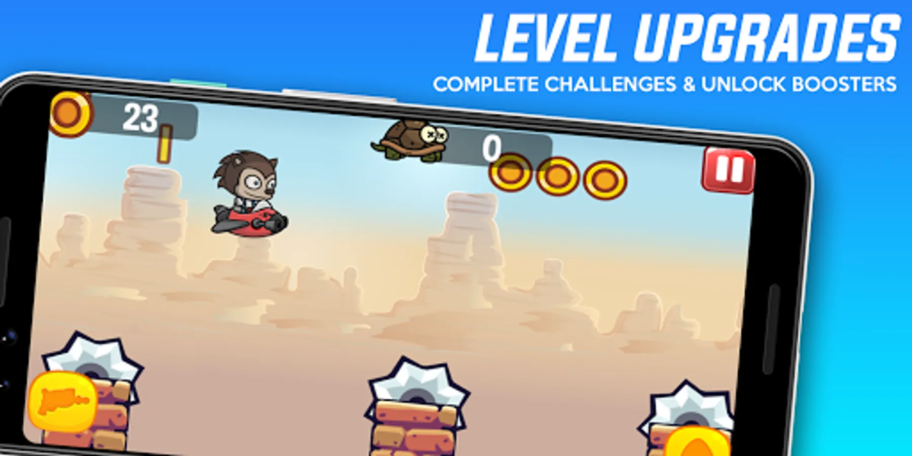 - Collect coins, shoot enemies & avoid obstacles to complete levels