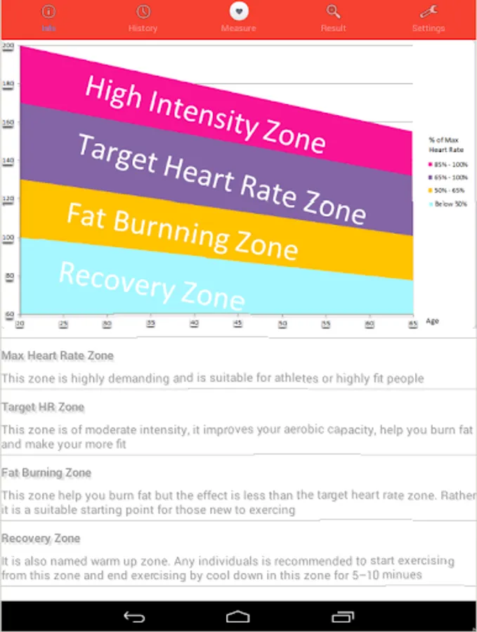 "Recovery Zone", "Fat-Burning Zone", "Target Heart Rate Zone" and the "High Intensity Zone".