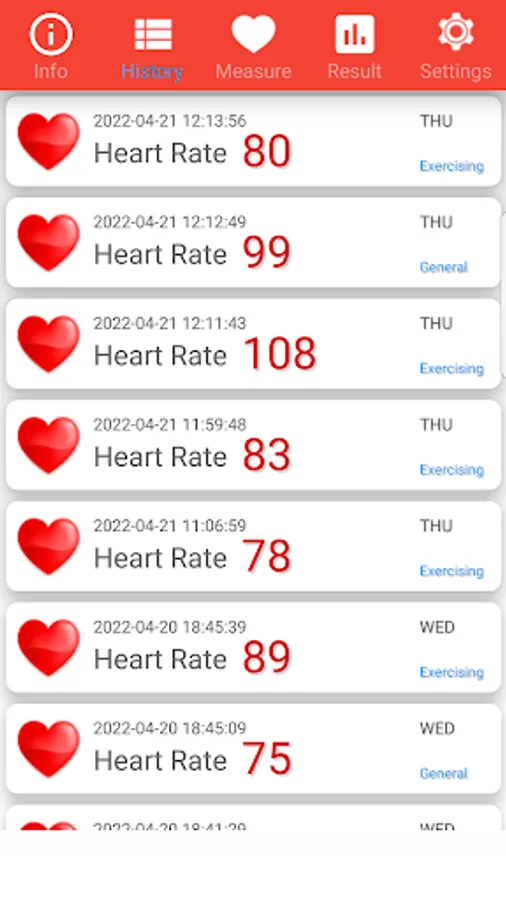 All the heartbeat data are saved and NICELY displayed to you. They are well organized in categories