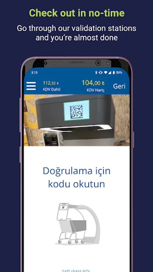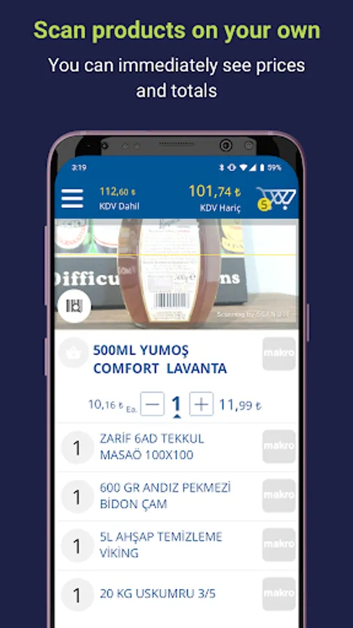 The application is easy to use: Scan the cart QR code and start scanning product bar-codes as you go.