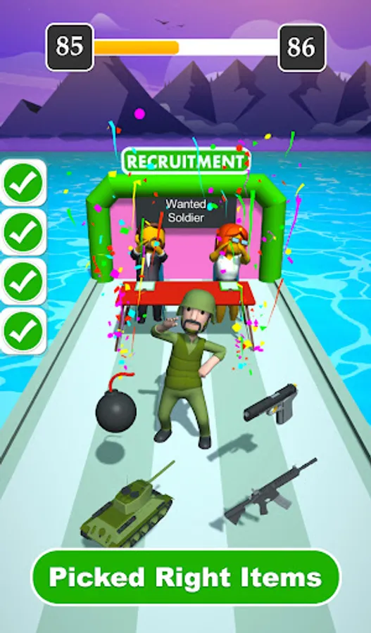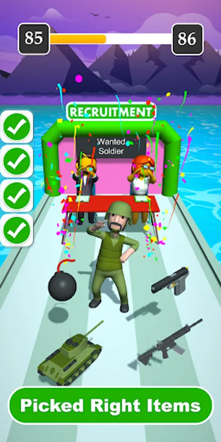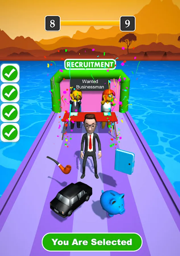 Pick the right stuff and get the Job. Pick the items that are related to the Profession, avoid the obstacles and items that do not belong to the Profession that get you rejected. Be careful not to get rejected by the Recruiter. If you pick wrong items you will be disqualified for the job. Pick right items earn more rewards.