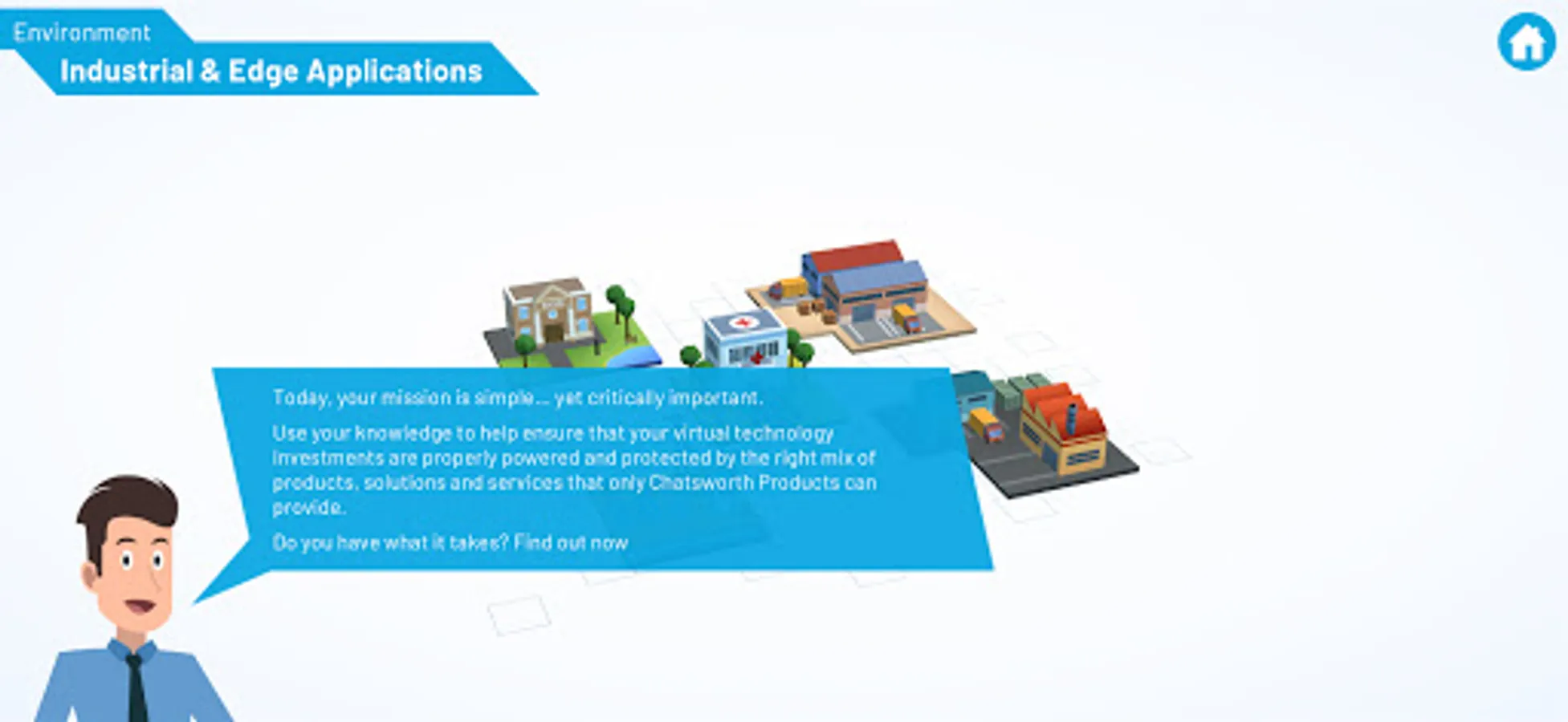 Test your knowledge of today's most practical and cutting-edge technology infrastructure practices with one of the world's leading providers and manufacturers of products and solutions that protect investments in information and communications technology for IT and industrial automation applications, Chatsworth Products (CPI). The Chatsworth Challenge combines multiple-choice based quizzes in three unique, immersive 3D technology infrastructure environments ranging from a traditional data center with power and cooling, to other indoor and outdoor spaces where the Internet of Things (IoT), 5G wireless and other emerging technologies are driving compute into nontraditional, "edge" environments. Whether you're an IT pro, industry insider or just plain curious about what makes today's digitally connected world go' round, this game has something for everyone.