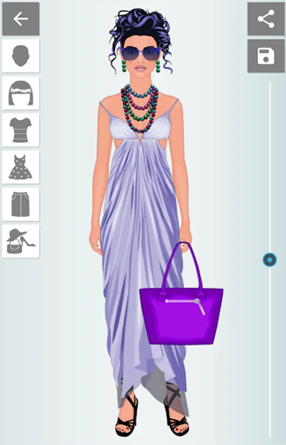 - After you finish dressing her up, save your design. You can view your recent designs and change them later.
