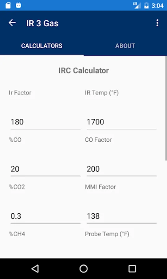 -The IR 3-gas calculator calculates % Carbon using the furnace temperature and the CO, CO2, and CH4 readings from a 3-gas analyzer.