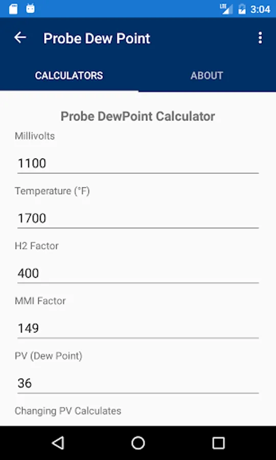 -The furnace calculator calculates %Carbon, Dew Point, and %Oxygen from millivolts and temperature.