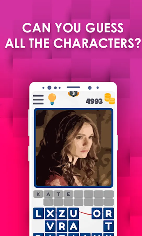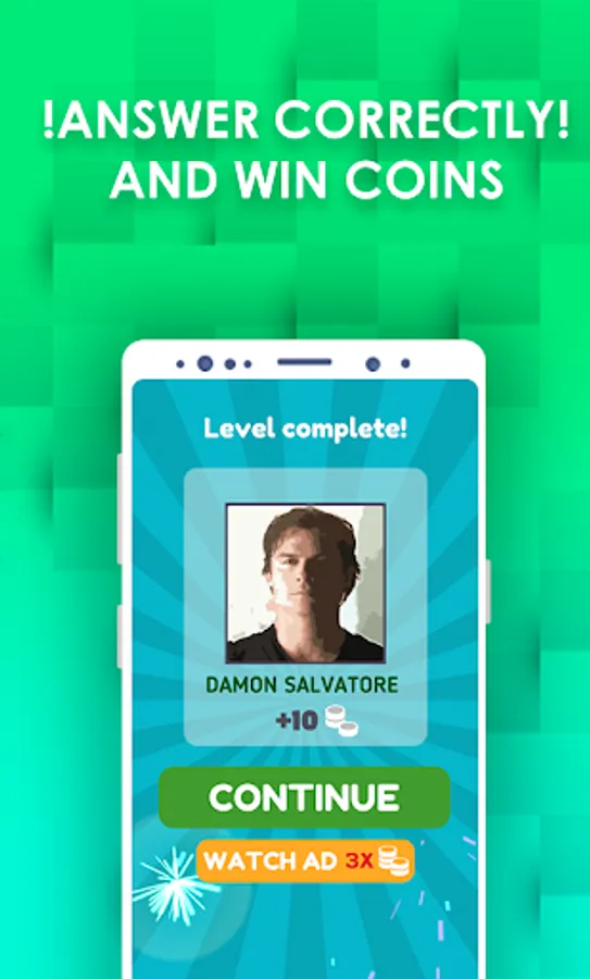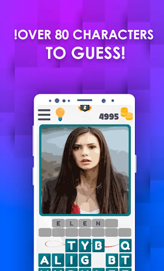 Very easy, touch the picture to get more crear the image and you just have to select the correct letters to complete the name of The Vampire Diaries Character that appears on the screen and once you have passed the level you will receive a bonus with which you can obtain hints in the next levels.