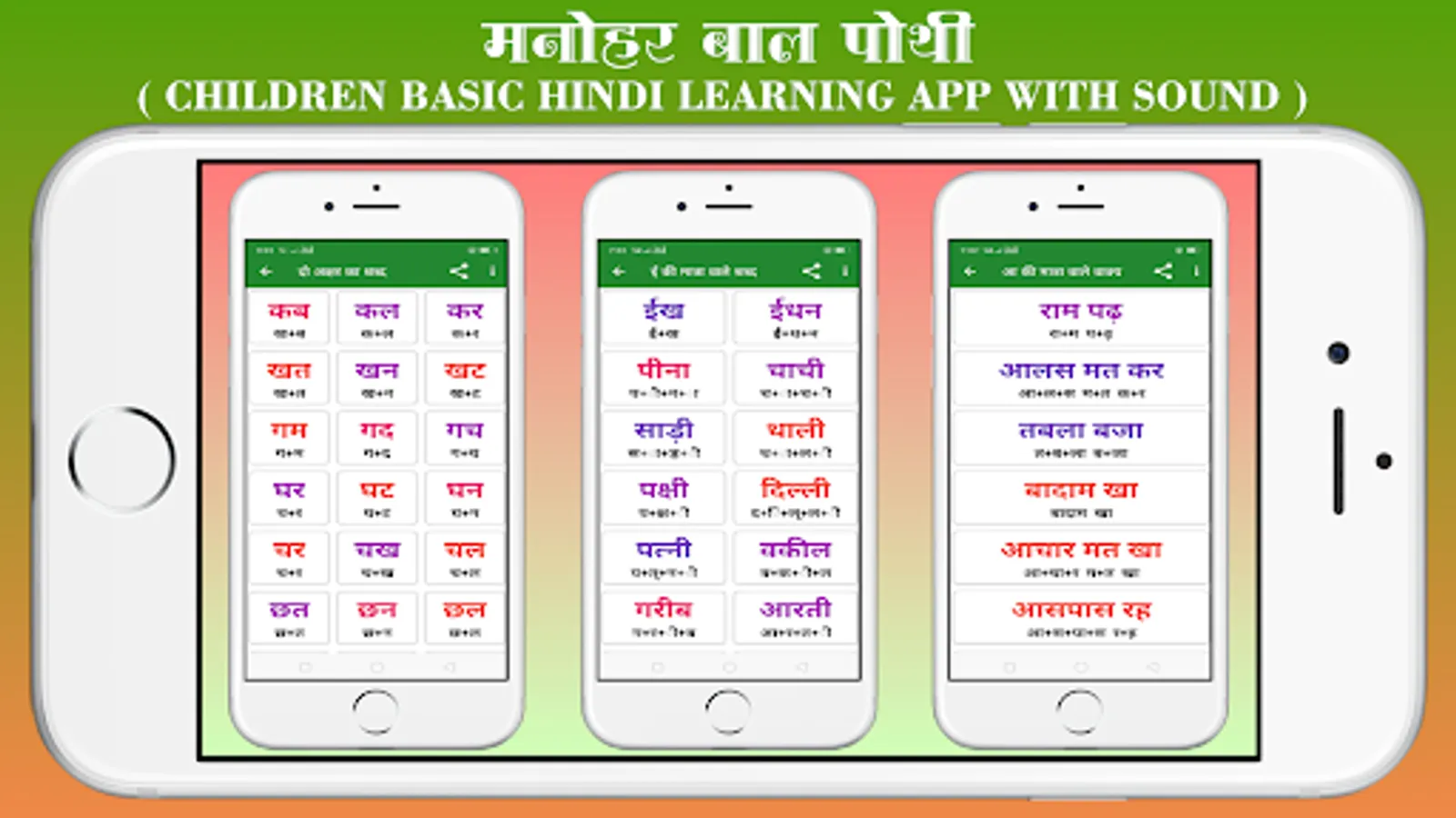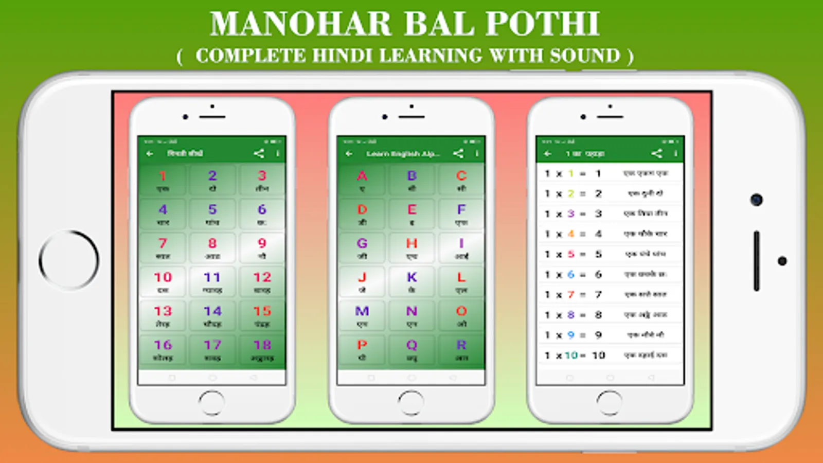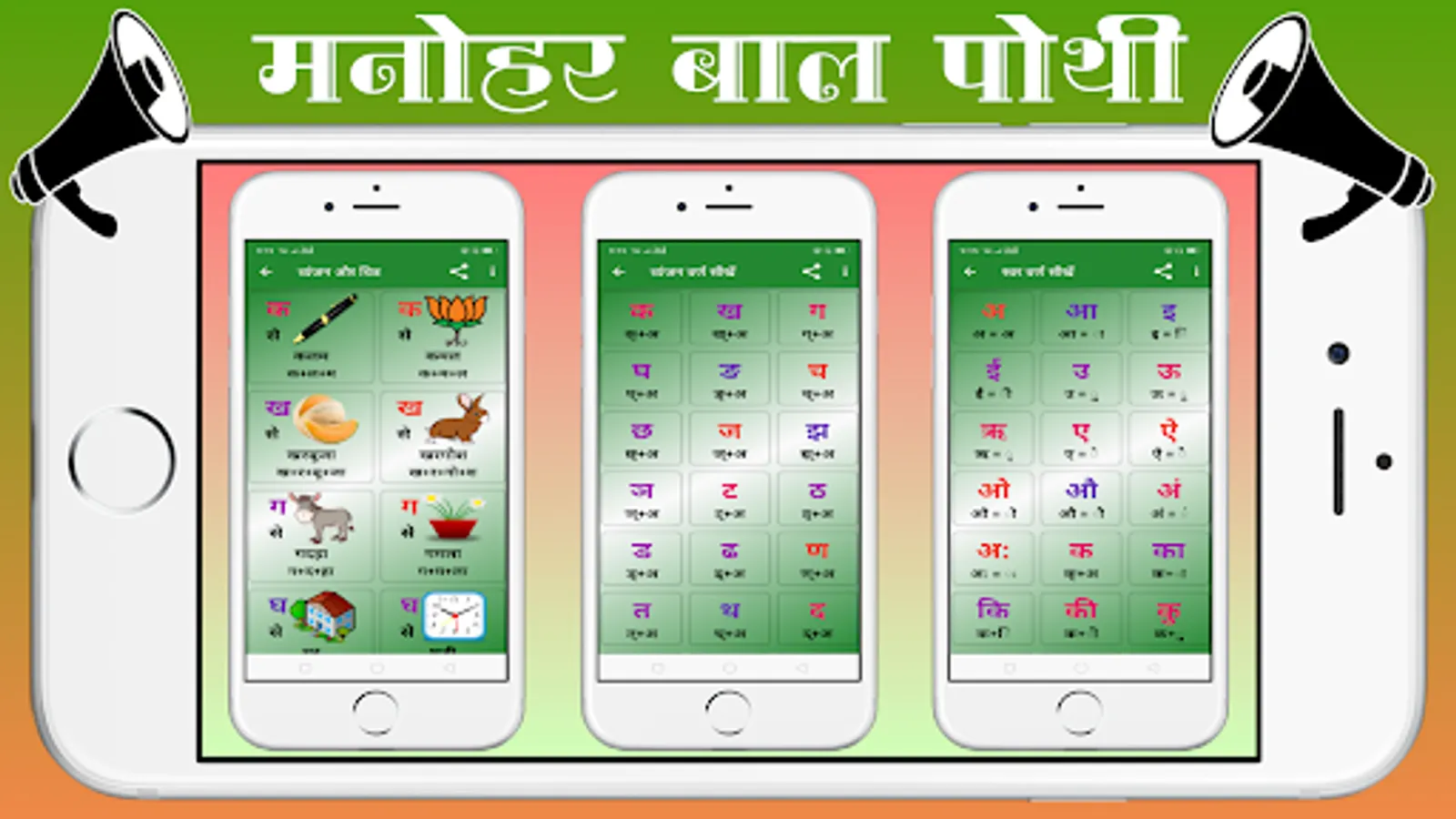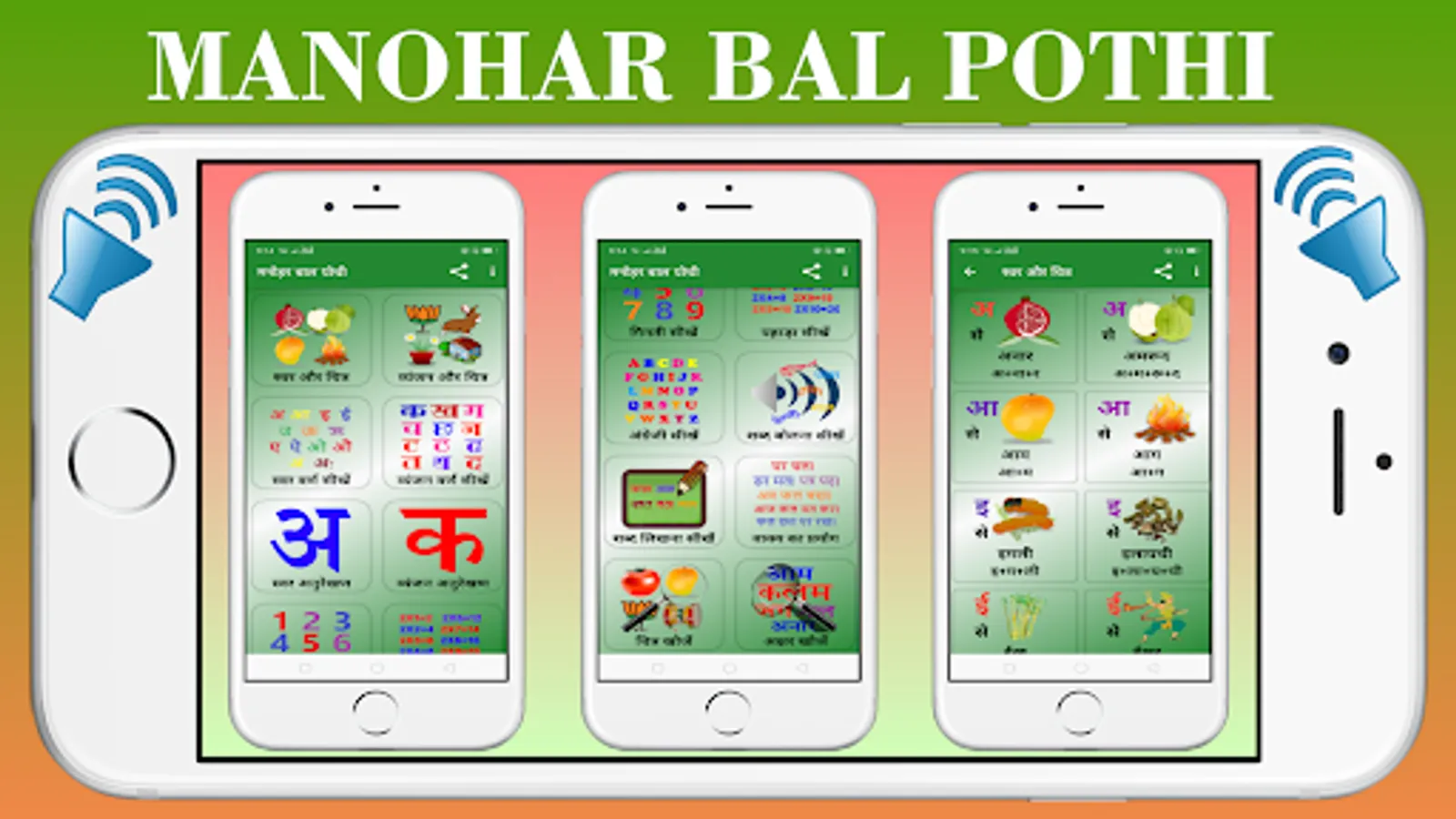 Monohar Bal Pothi is an educational App for children to learn Vowels, Consonants, Alphabets, Barahkhadi, Counting Table, Writing Letter, Picture Search, Word Search Etc with sounds.