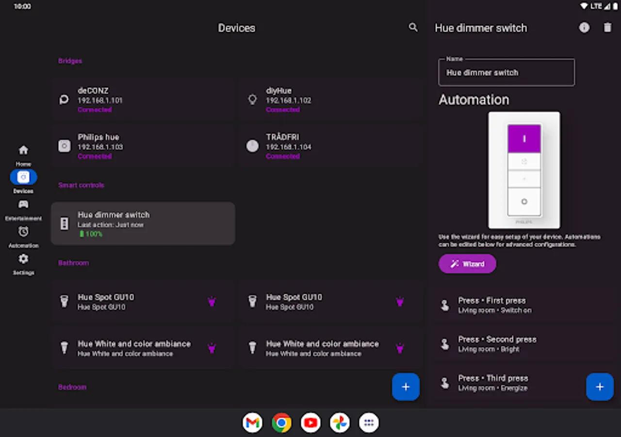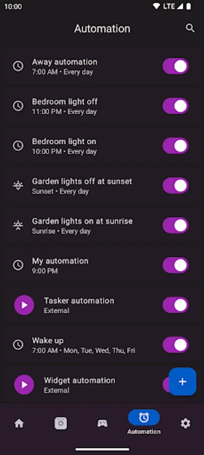 Automation allows you to have greater control of your smart home. Turn on your lights when the door opens. Adjust your ventilation when the humidity gets too high. Open or close blinds and curtains based on temperature or sunshine. Configure endless automation possibilities through the Tasker plugin.