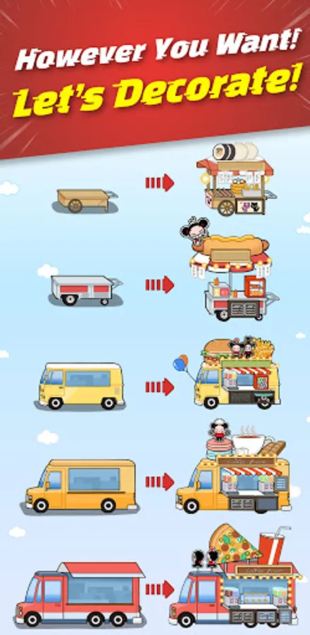 - Starting with the abandonded hand cart to the luxurious food truck! LET'S UPGRADE your ride!