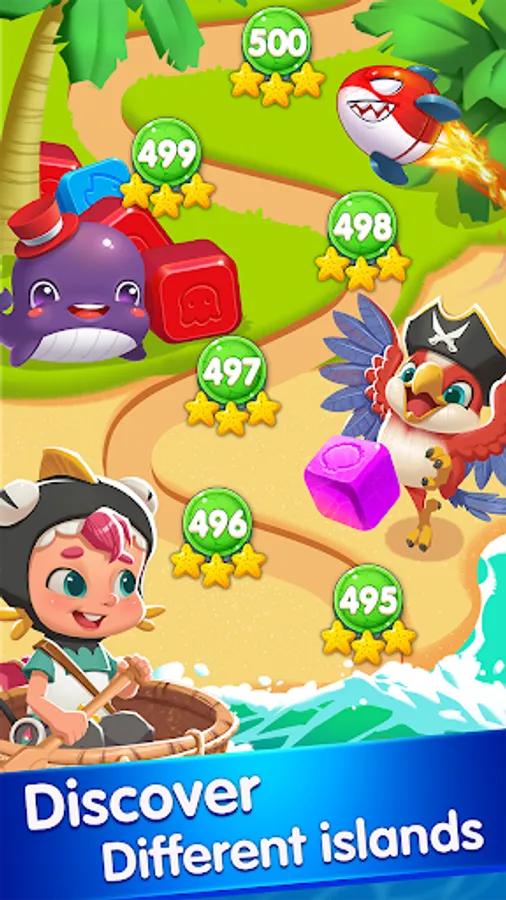 Start your journey with Captain Jack, pop cubes and solve puzzles, visit all the islands in this fantasy cube blast world!
