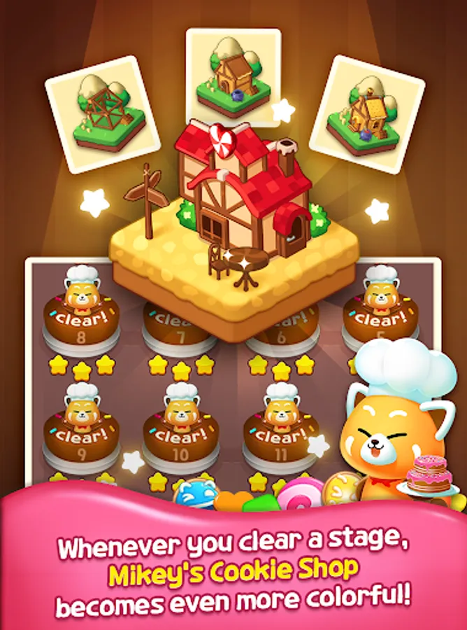 🎈 Clear each stage to open new themed areas and help expand Mikey’s Cookie Shop!