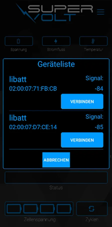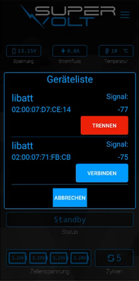 Establishes the connection with Supervolt Lithium LiFePO4 batteries and clearly displays battery-related data.
