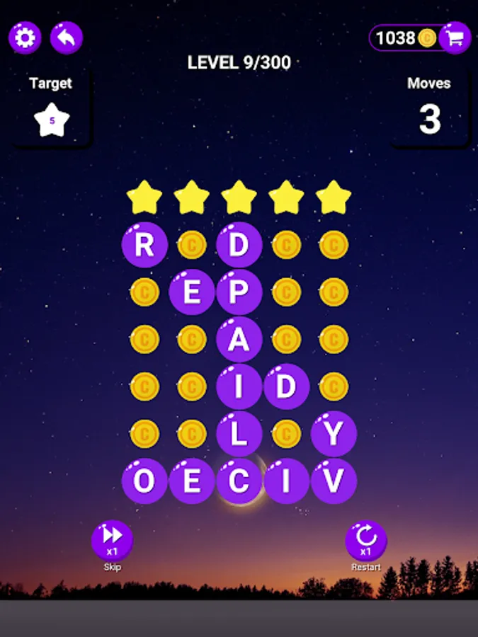 The ultimate goal is to find as many words as possible and clear the grid, but be careful - some levels have a limited number of moves!