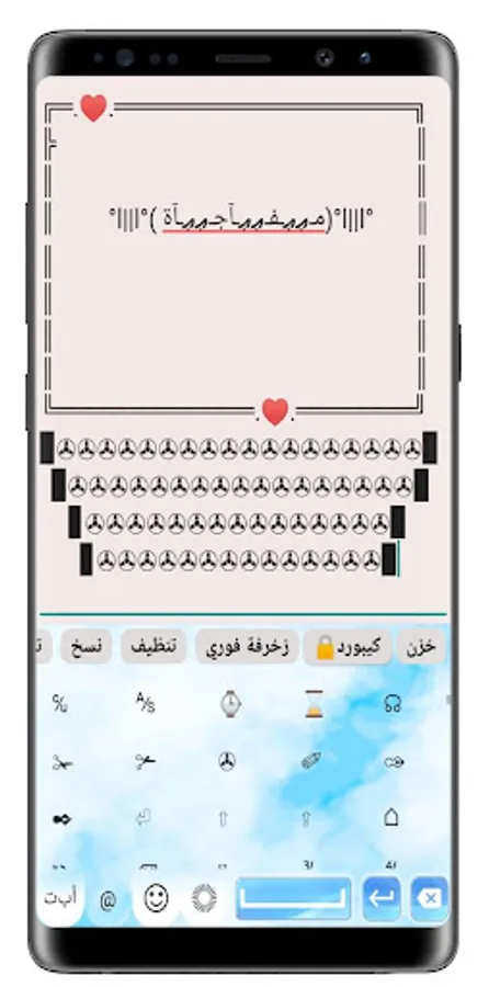 To facilitate writing texts, a keyboard has been created within the application. You can choose the type of decoration and then write whatever you want