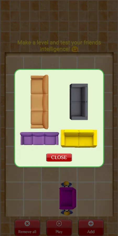 Design your own level where you can test your friend whether he can take the sofa outside or not