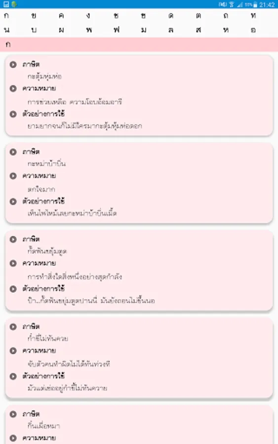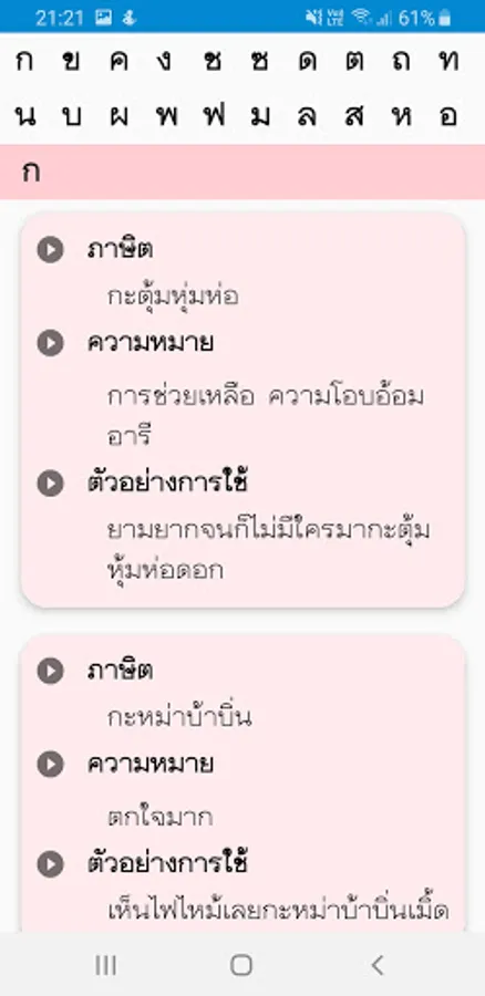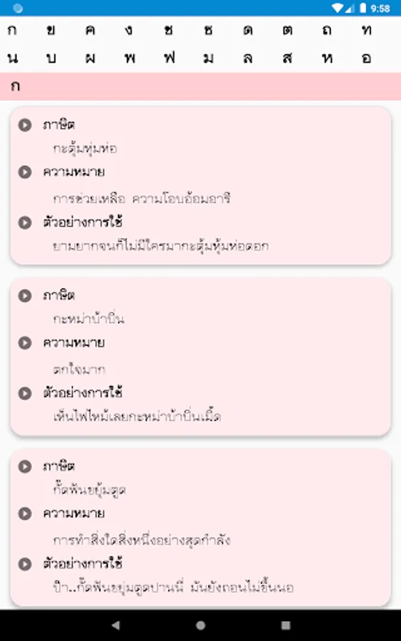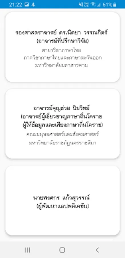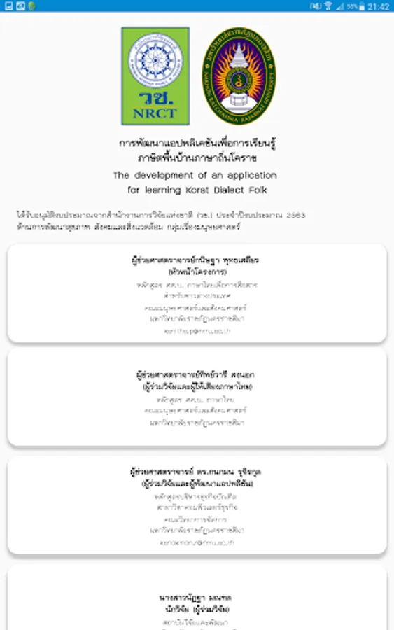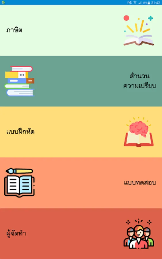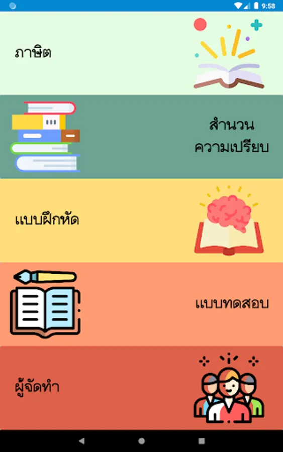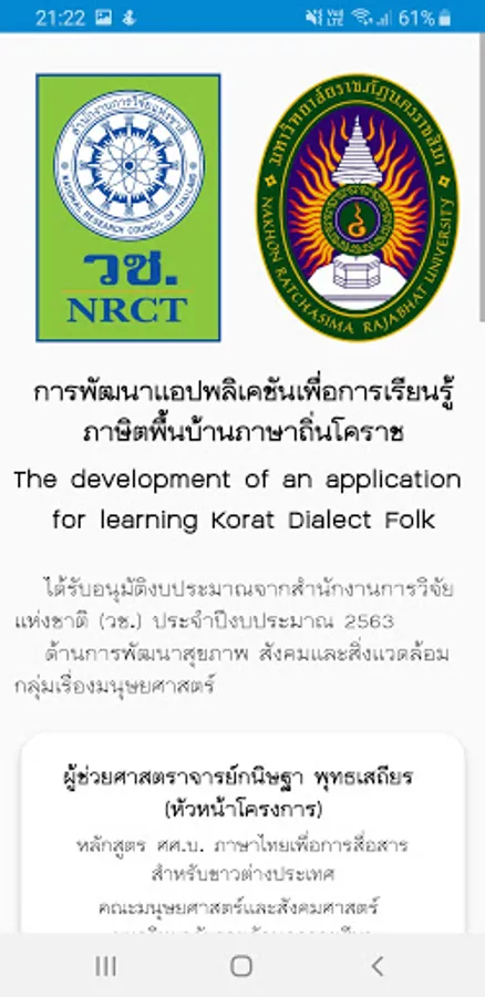 We collected Korat proverbs and idioms from Korat-speaking scholars in Nakhon Ratchasima Province, Thailand. And we take into account the selection of appropriate proverbs and idioms that easy to learn and valuable to life then develop an application to use as a learning material for primary school students.