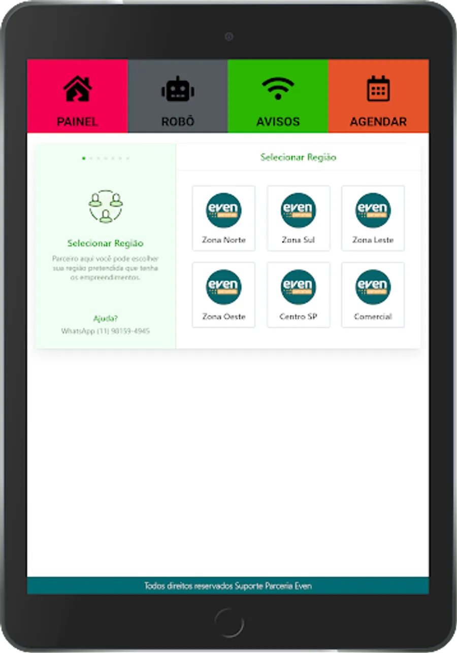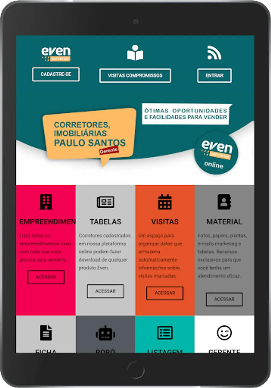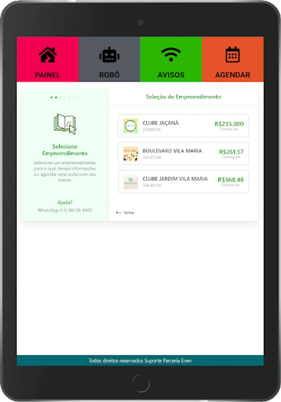 With everything you need to sell Even ventures, the Even Partnership Support app is smart dynamic and gives you a lot of autonomy, agility to your business in a practical and smart way in the palm of your hand, on the tablet and also on the PC, all integrated onmichanel technology, and best of all, it's free.