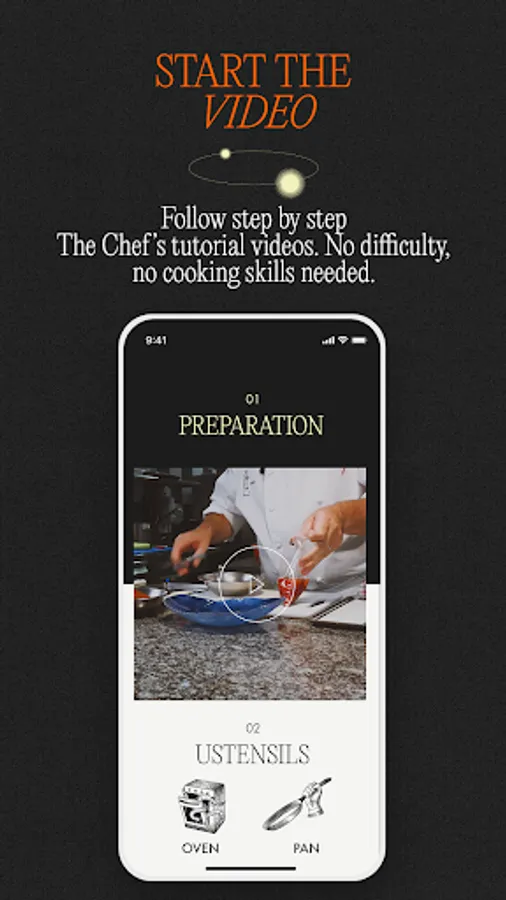 The Chef’s tutorial videos. No difficulty, no cooking skills needed.