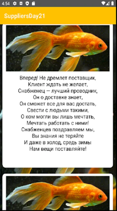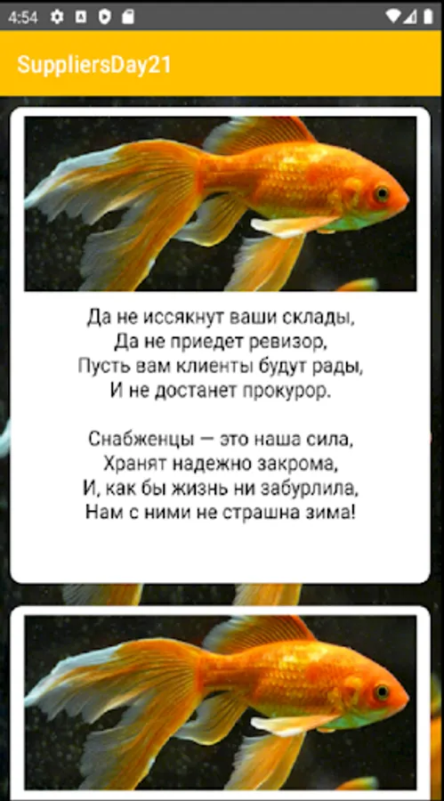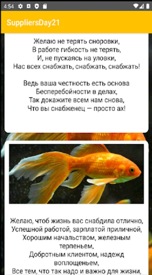 In 2001, Simplex suggested annually celebrating the holiday on December 19 - Supplier's Day and, of course, found proper support among professionals. It's funny that the goldfish became the symbol of the holiday. Probably, the initiators wanted to show that the supplier in any case will provide the material and technical base of his enterprise, no matter what moral and physical strength it may cost him.