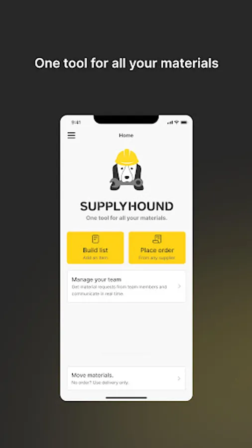 SupplyHound is an online ordering and collaboration app for construction materials. Order online from all your suppliers, schedule for Will Call or delivery and coordinate with your team all in one app.