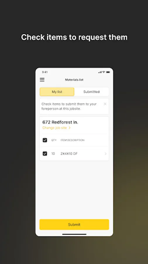 Request the construction materials you need for the job site.
