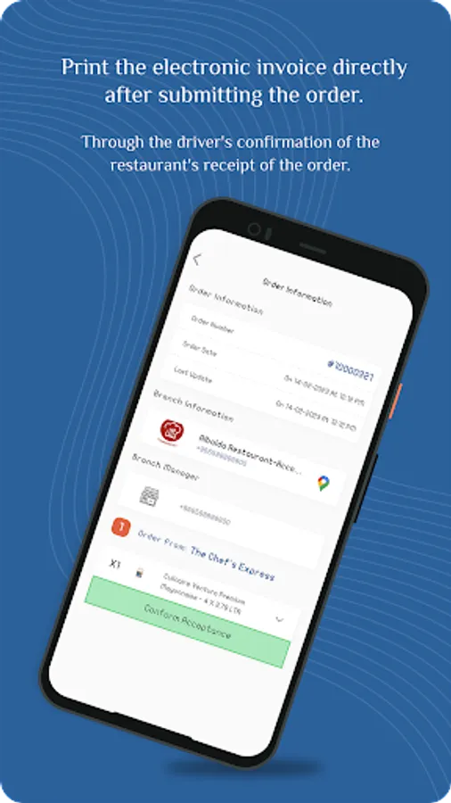 - Print the delivery invoice after the restaurant and driver agree to receive the products directly.