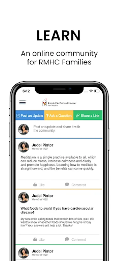 Welcome to RMH Fort Worth, a home where families can find comfort, encouragement, and support. This is a platform designed for families of RMH Fort Worth before, during, and after your stay. You can learn, connect and grow by accessing house resources and information, sharing stories, and connecting with other families.