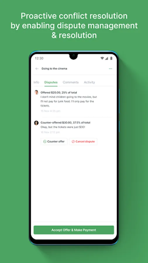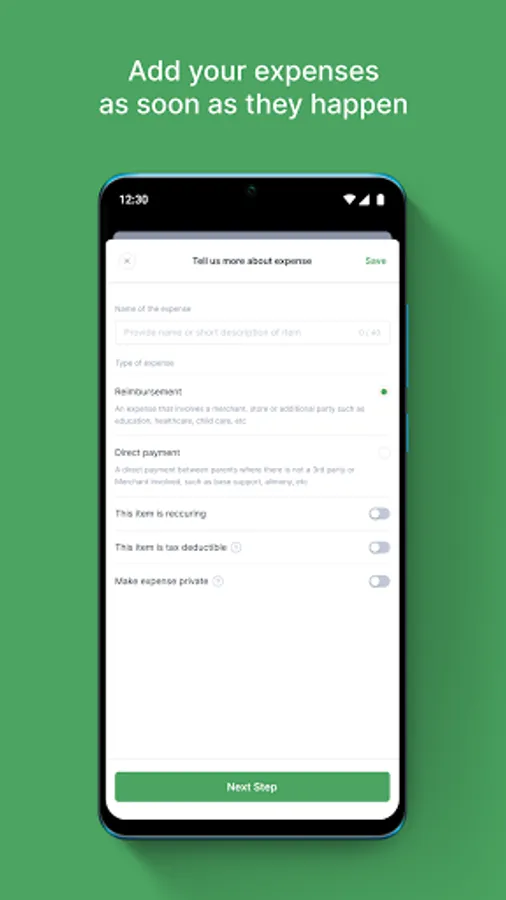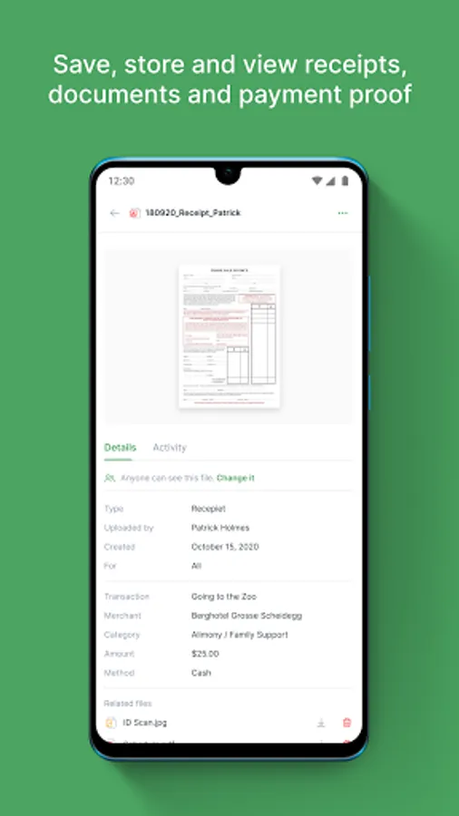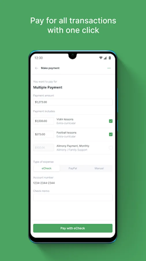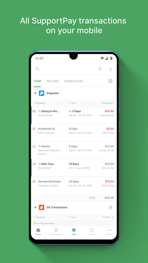 • Use on your own for tracking and certified record keeping or connect with the other parent for automatic tracking, payments, dispute management and transparency