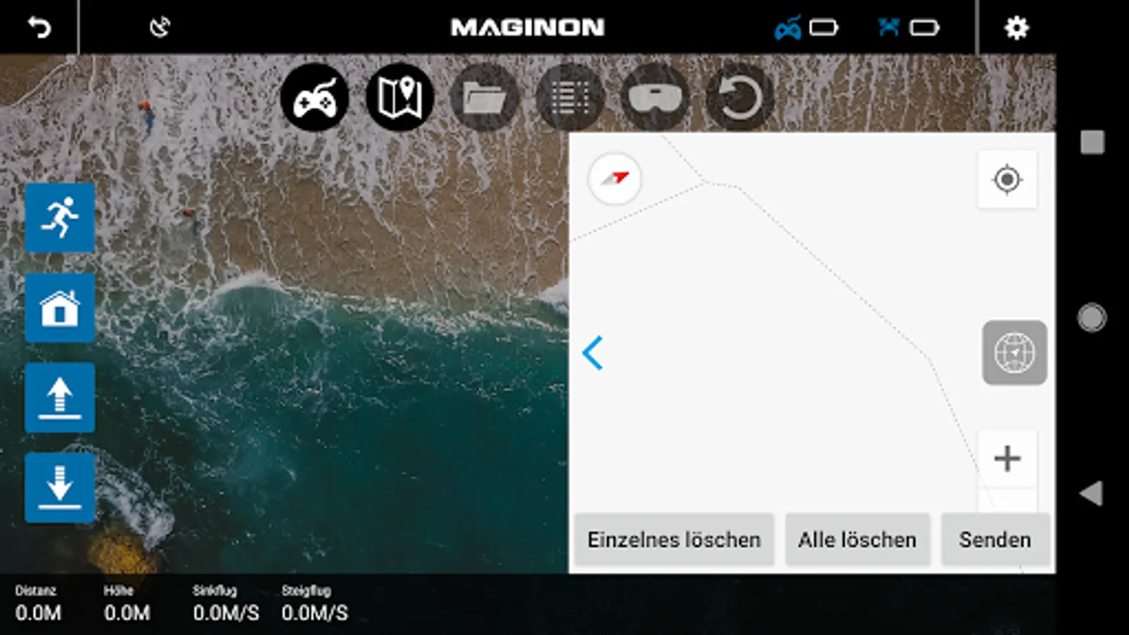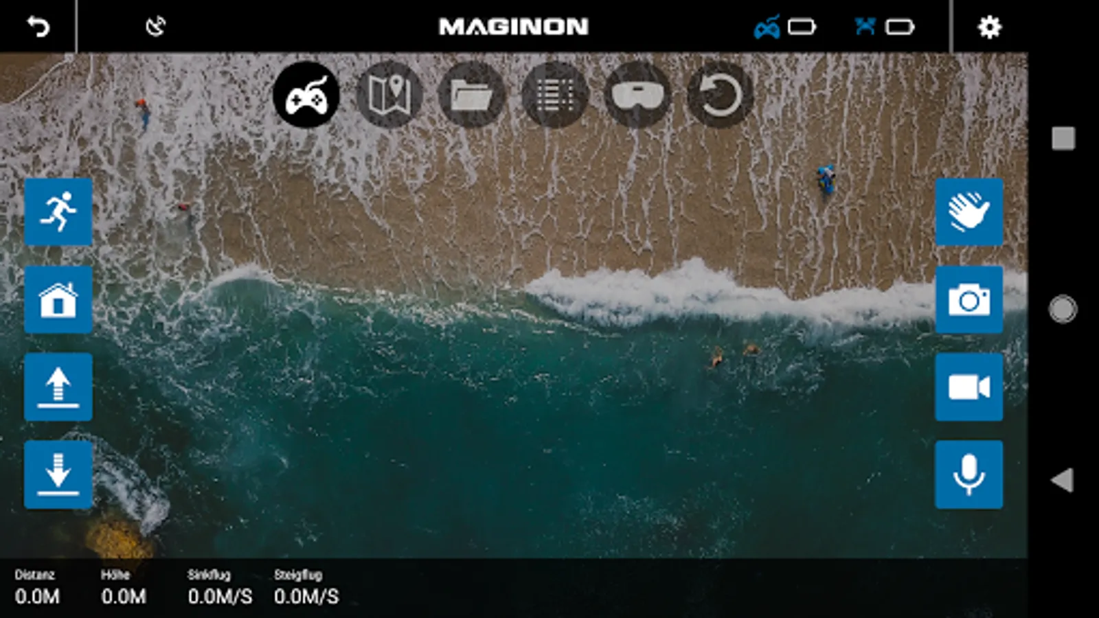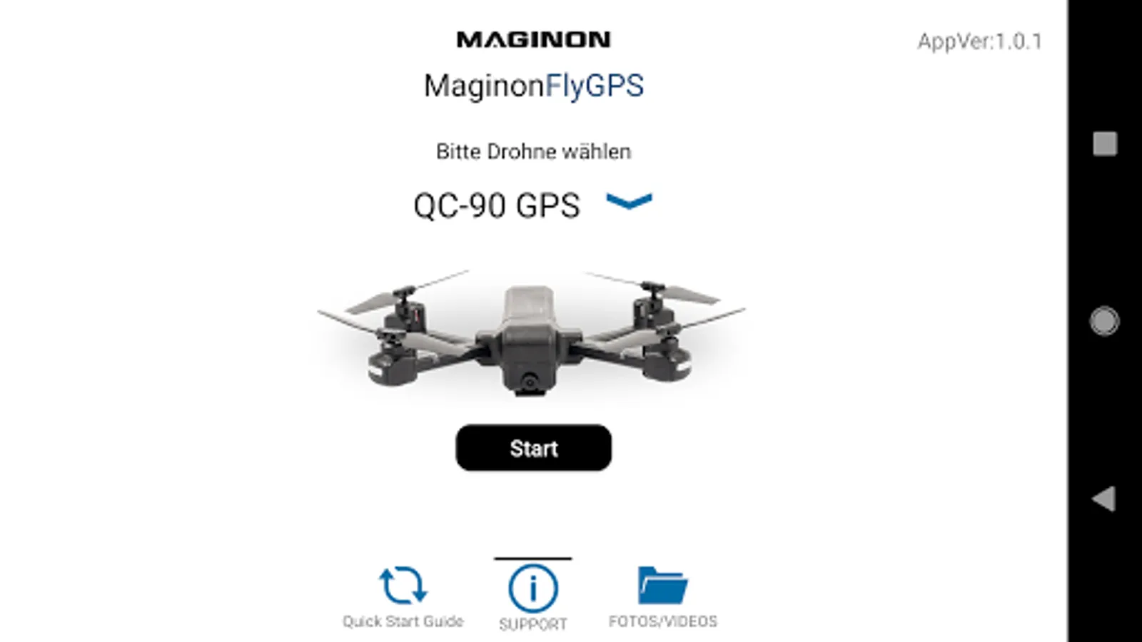With the app "MAGINON Fly GPS" is a powerful app as a remote control of the MAGINON QC-90 GPS available. You can use it to control the quadrocopter, receive the live image of the WIFI Full HD camera on your mobile smartphone, align the camera, and many other features such as: Use the gesture controls for still and motion pictures, follow me mode, or the way-point fly feature.