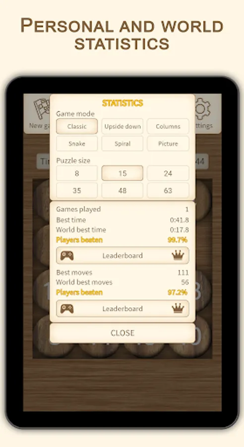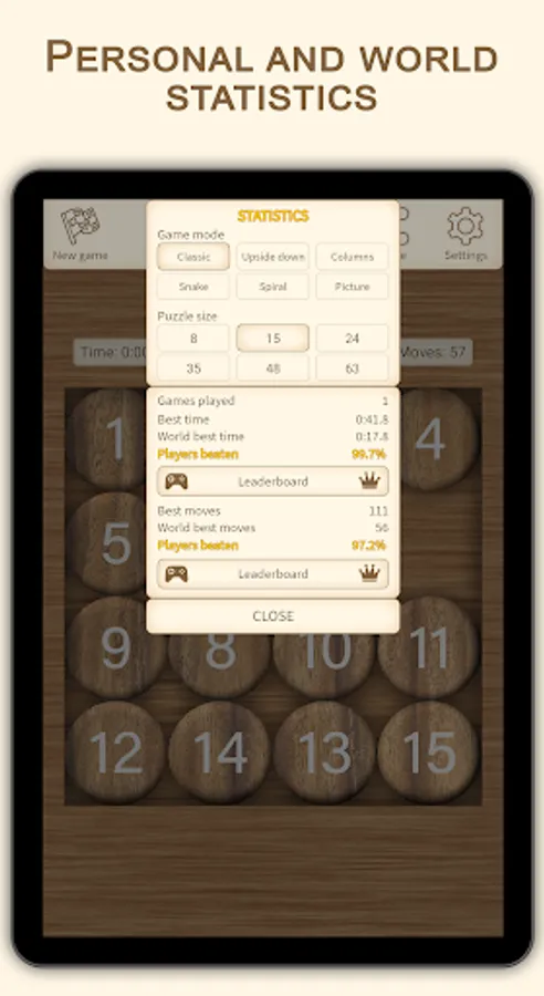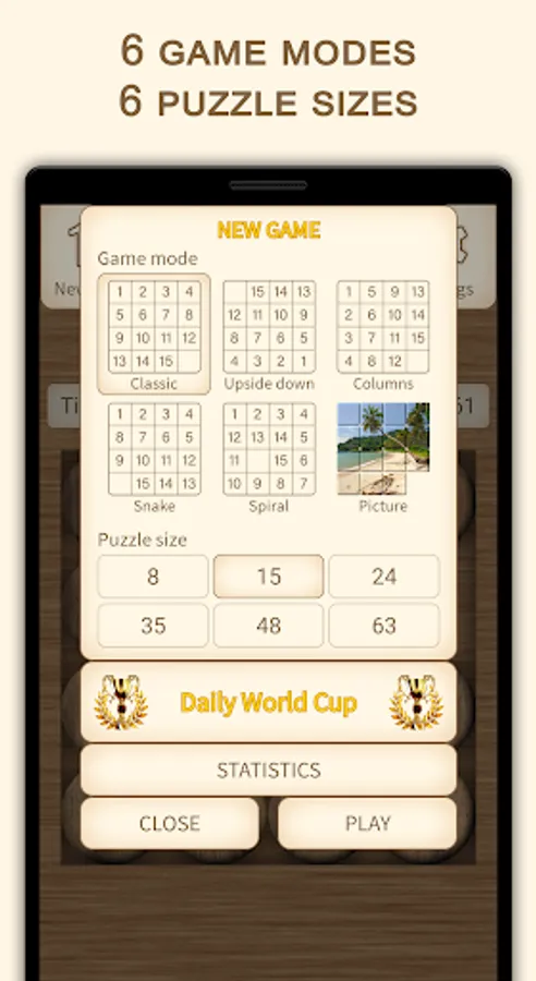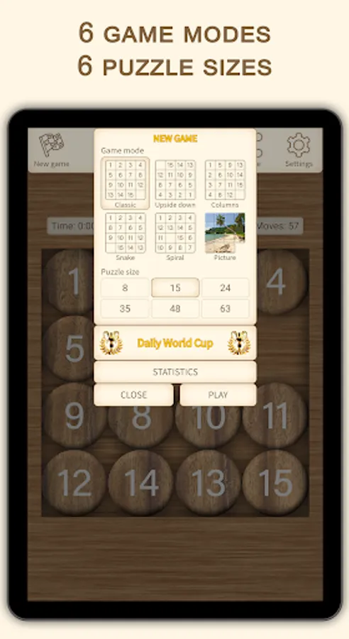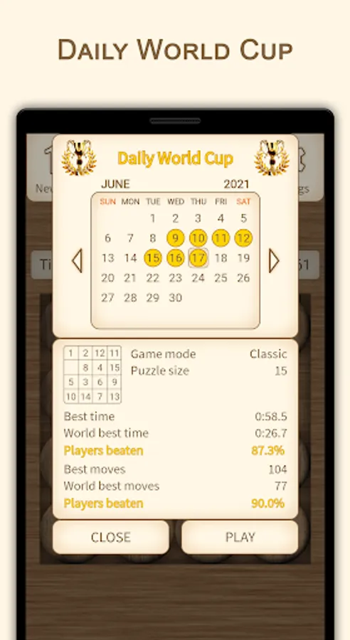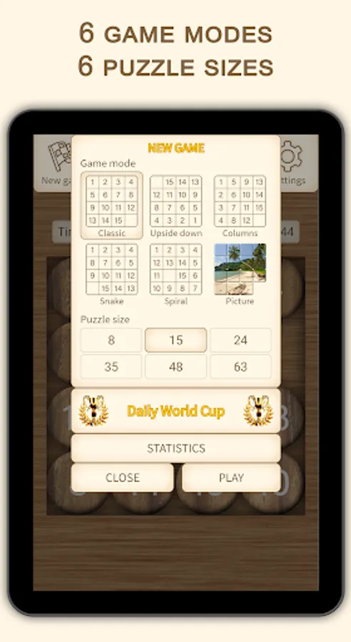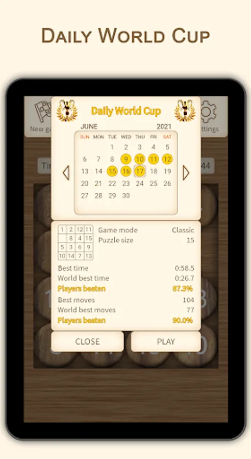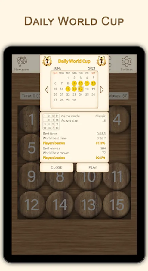 The 15 puzzle is a sliding puzzle that consists of a frame of numbered tiles in random order with one tile missing.