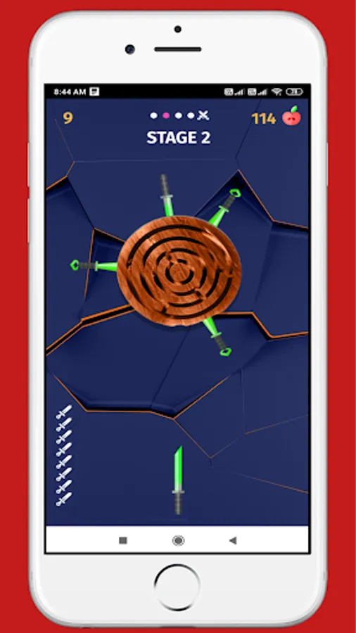 - If your knife hits the other knife, you have to restart the level or restart the game