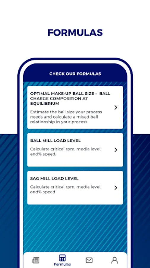 It has been developed to estimate the appropriate ball size for a grinding application determined by equipment data and knowledge of the process. Therefore, it is necessary to have data of the equipment where it will be used and also data of the type of material that will be processed.