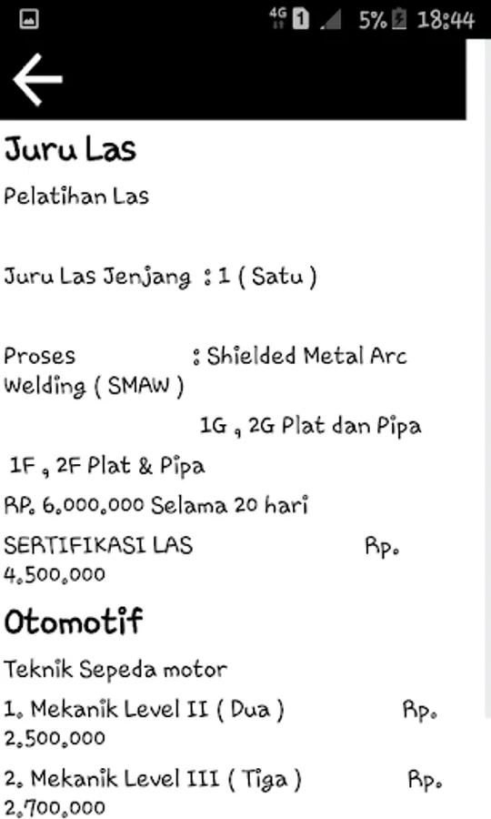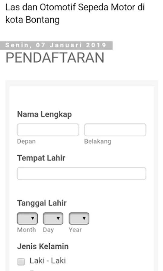 Application to register and view profiles of institutions of courses and training of welders and automotive motorbikes in the city of Bontang