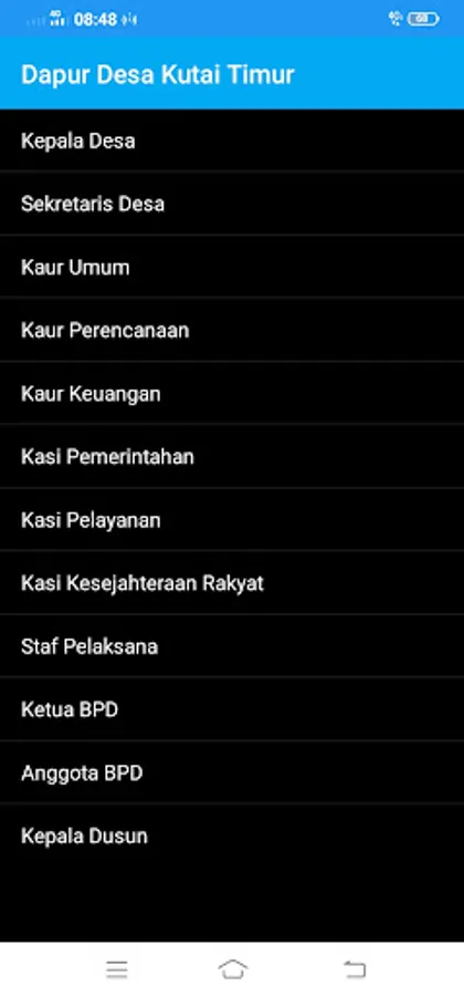 Application intended to view and upload all data on village apparatus in East Kutai Regency