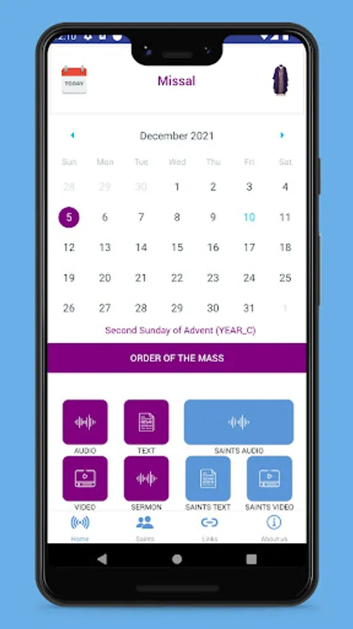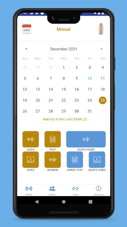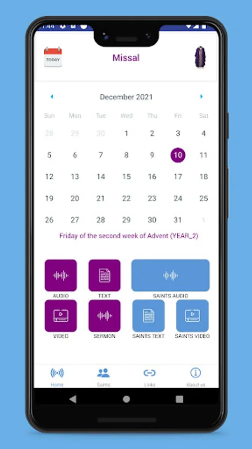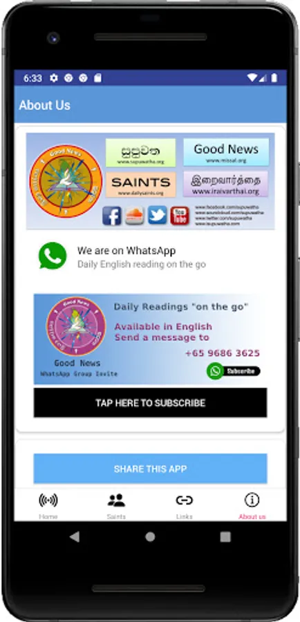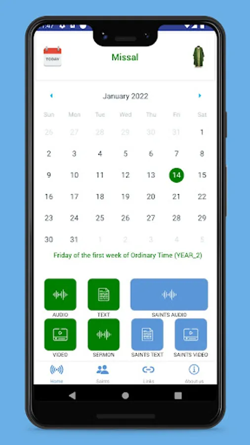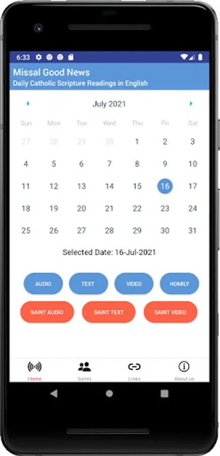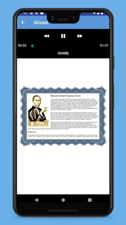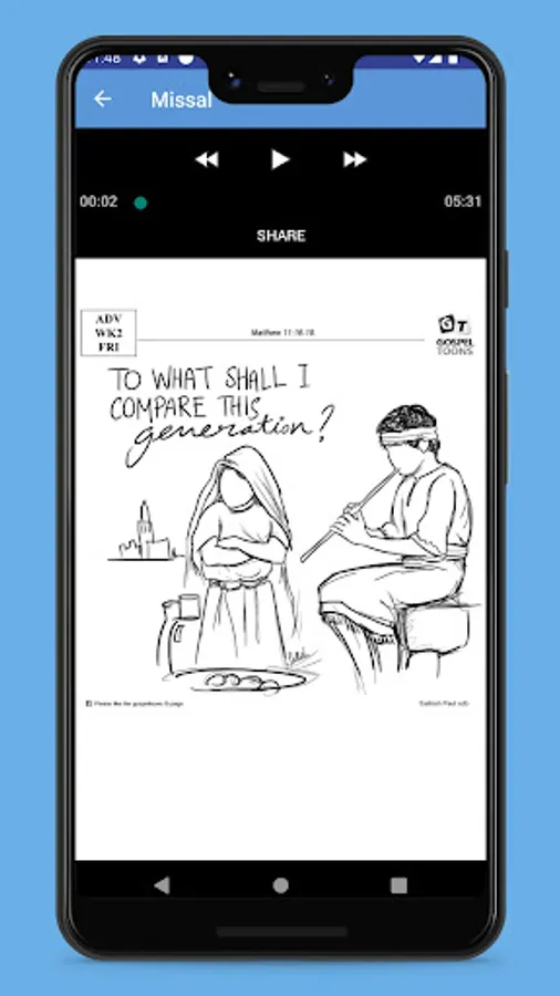 You have the option to share the readings Audio, Video, Text and Saints Audio.