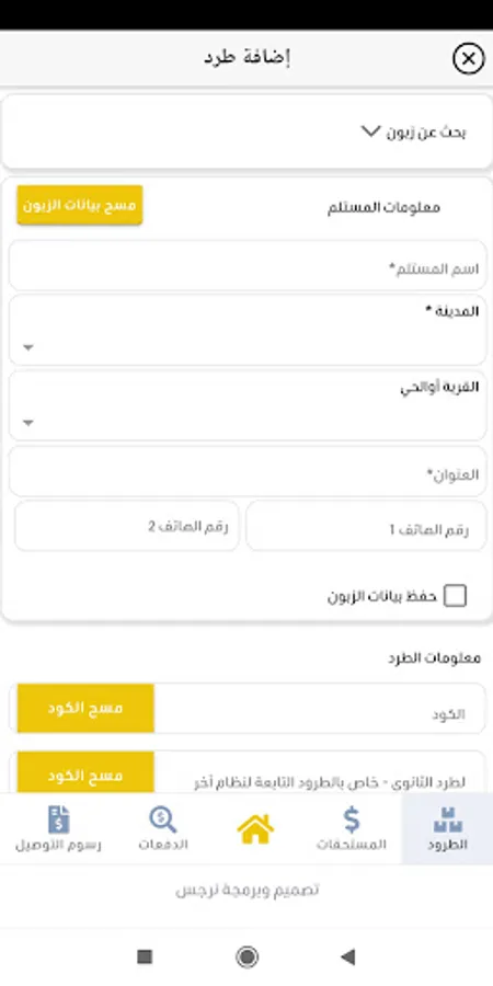 * إمكانية التعامل مع الطرود من خلال فحص الكود