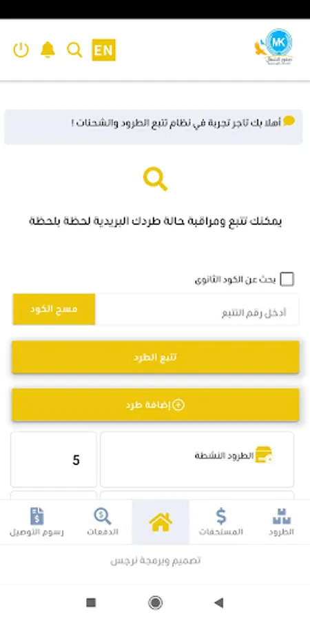 * إمكانية عمل حساب من قبل التاجر ليتمكن من إضافة الطرود المطلوب تسليمها