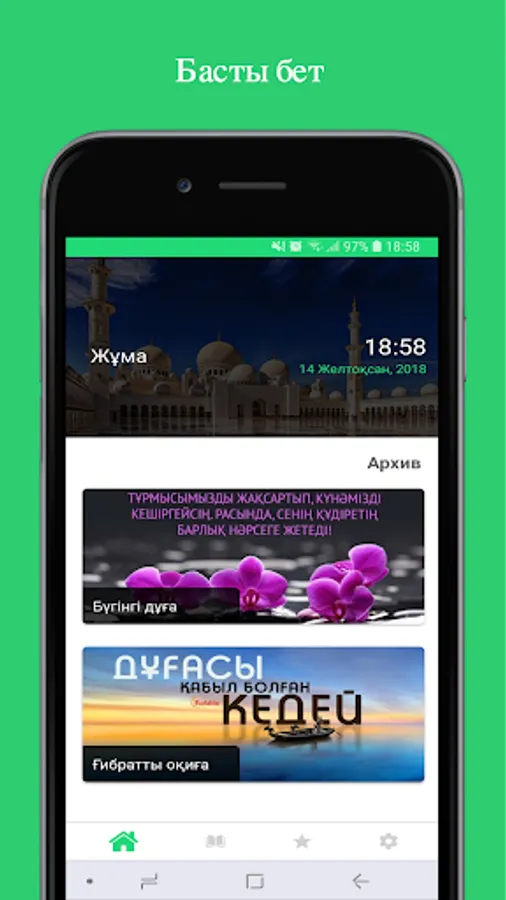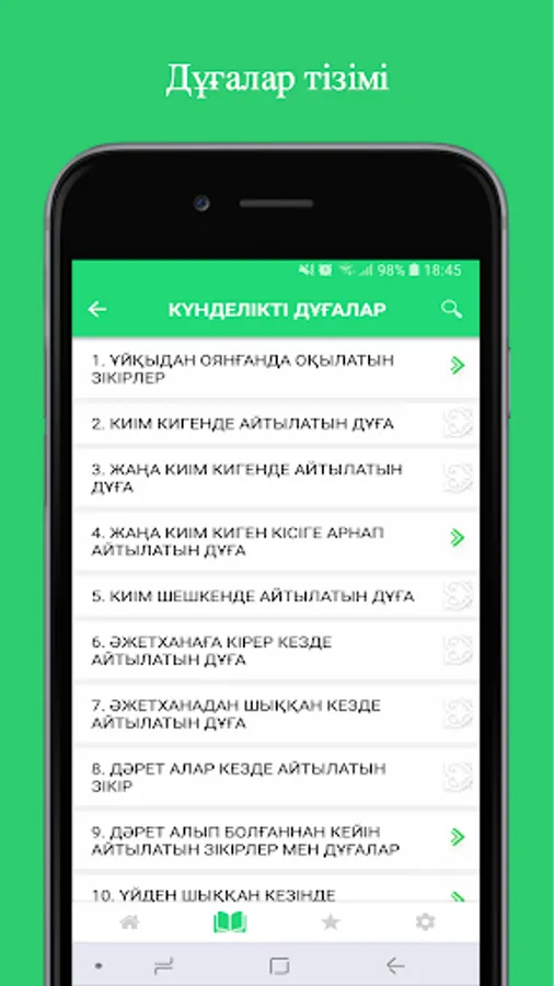 Kazakhstan mұsylmandary dіni basқarmasynyң resmi www.muftiyat.kz saytynyң әzіrleuіmen zhasalғan bұl қosymshada mұsylman өmіrіnің әrbіr sәtіne қazhet bolatyn dұғalar қamtylyp, dұғany dұrys zhasaudyң Zholdary kөrsetіlgen.